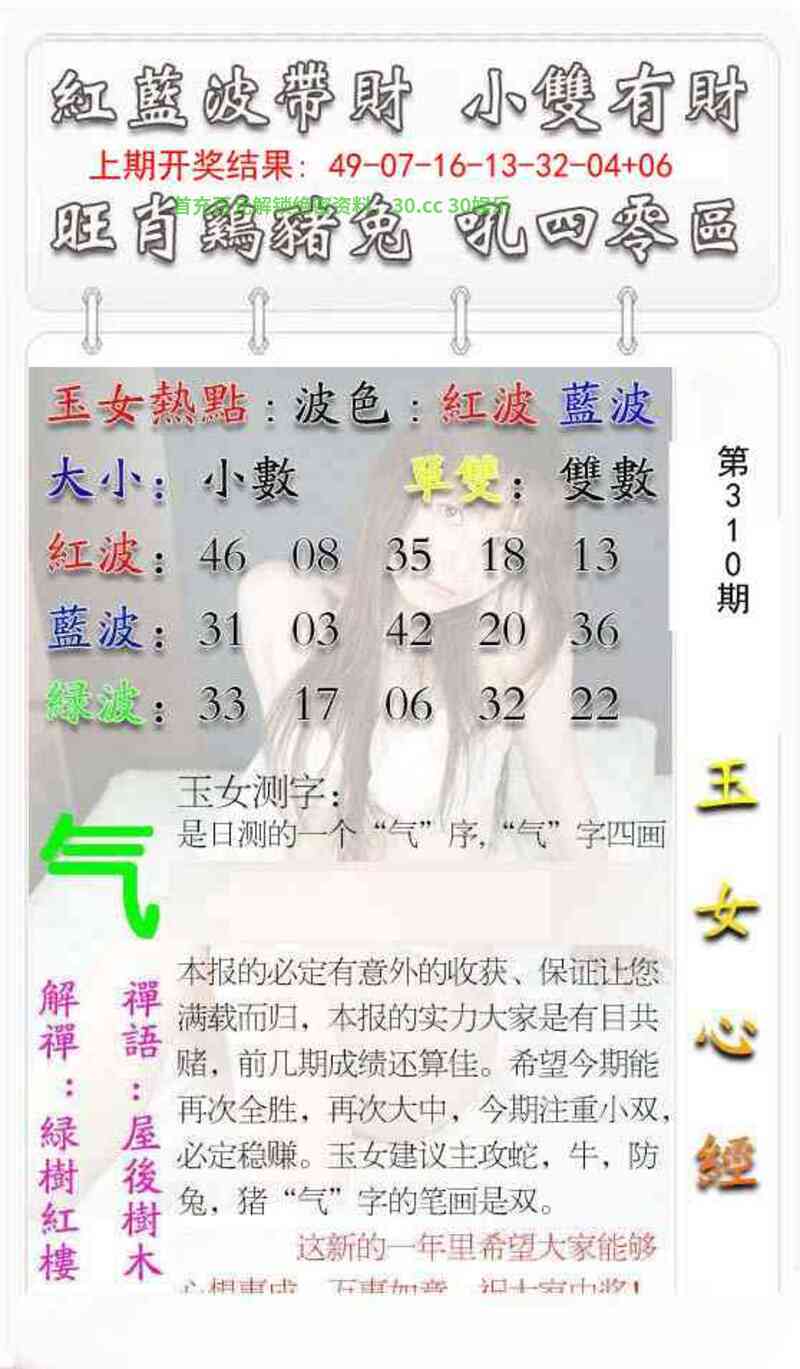 307期澳门彩票中心开狗20 波色:绿波蓝波 头数:123头 生肖:狗龙鼠兔猪虎牛鸡羊 平特:狗狗狗 主码:20,32,26,38,18,30 防码:27,19,28,17,33,35 |